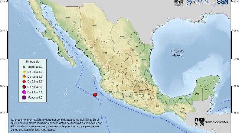 Se registran tres sismos frente a la costa de Jalisco, el último de 5.5 grados
