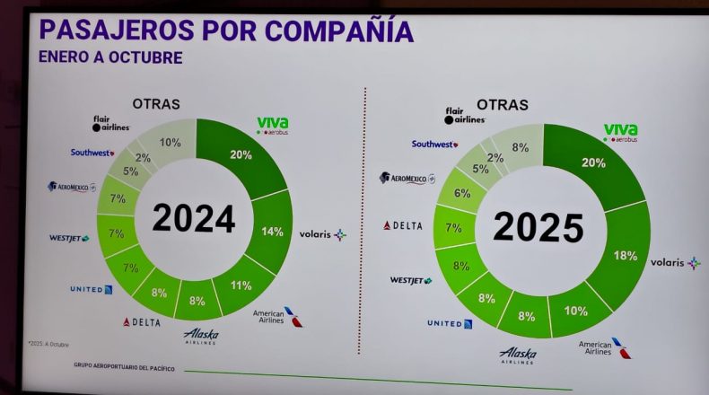 Mantiene por escaso margen Viva Aerobús como principal línea aérea en Puerto Vallarta