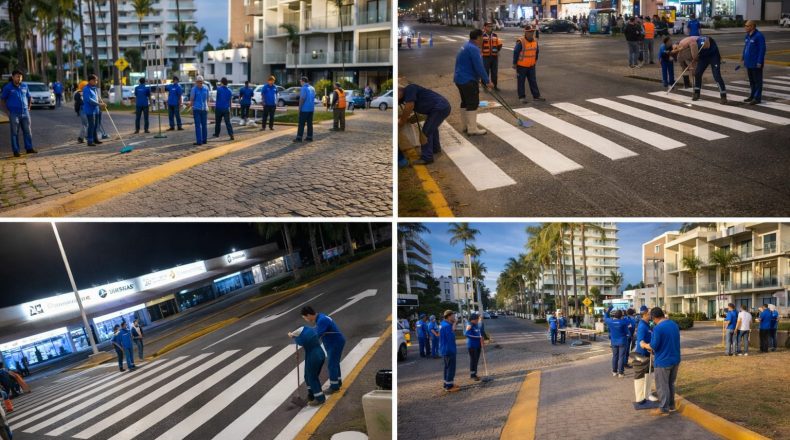 Mejora la seguridad vial en Marina Vallarta: Realizan trabajos de balizamiento