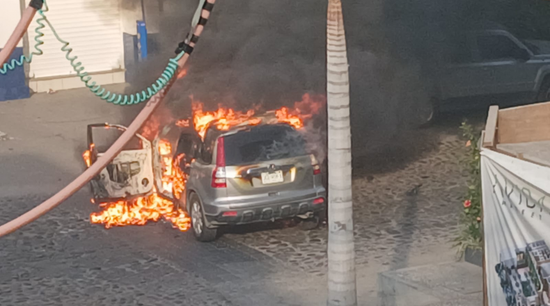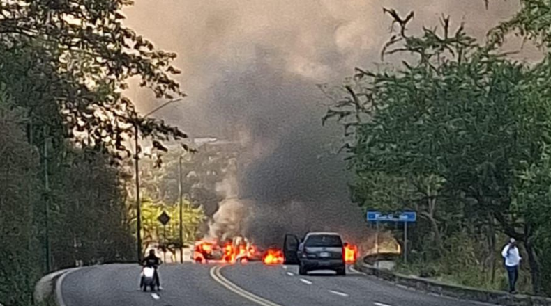 Domingo difícil en Puerto Vallarta con bloqueos y autos incendiados