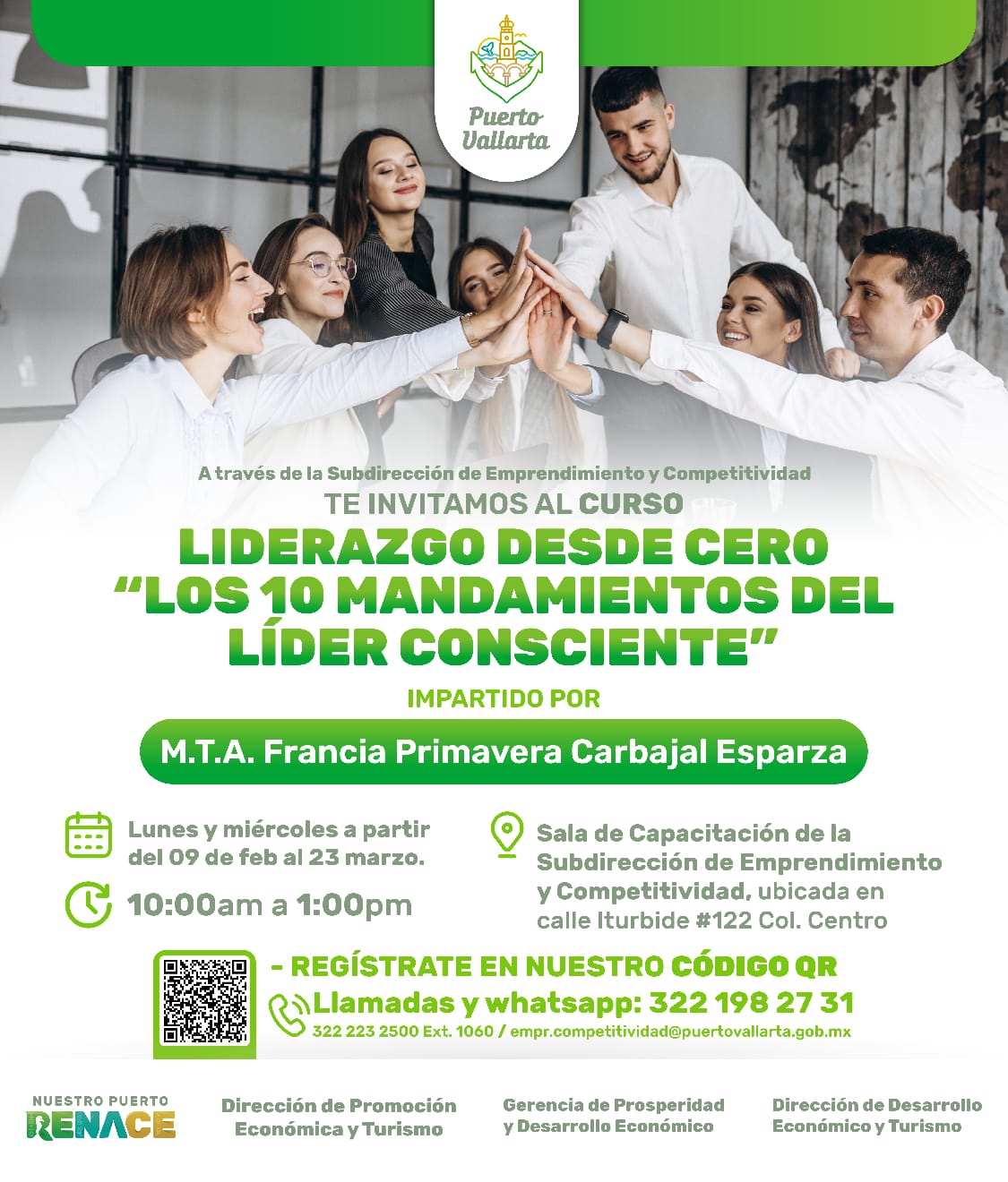 Puerto Vallarta abre nuevas oportunidades de crecimiento personal y profesional con el curso “Liderazgo desde Cero: Los 10 Mandamientos del Líder Consciente”, una iniciativa del gobierno que encabeza el Arquitecto Luis Ernesto Munguía González, a través de la Dirección de Promoción Económica y Turismo, dirigida a quienes buscan fortalecer sus habilidades de liderazgo y potenciar su desarrollo.