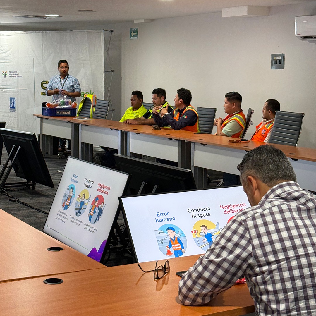 En el Aeropuerto Internacional de Puerto Vallarta se llevó a cabo las actividades “Detector de peligros”, una dinámica para identificar peligros y fortalecer la cultura de prevención entre todos los colaboradores; “Cruzar sin ver, cuesta vidas”, enfocada en crear conciencia sobre el peligro de no respetar las áreas operacionales; “Guardianes del aire: Control de Fauna”, donde se destacó la labor del equipo encargado de mantener el equilibrio entre la operación aérea y el entorno natural.