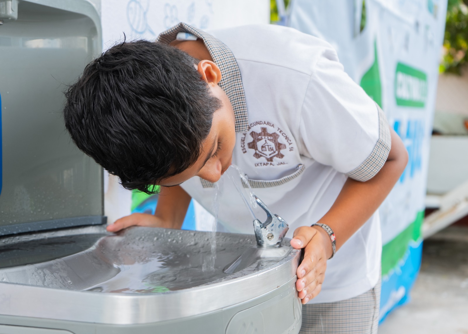 La primera escuela beneficiada con la iniciativa es la Secundaria Técnica 56 de la delegación Ixtapa, donde más de 1,200 estudiantes de este plantel tendrán acceso al agua de calidad de manera gratuita, beneficiando su salud y la economía de su familia.