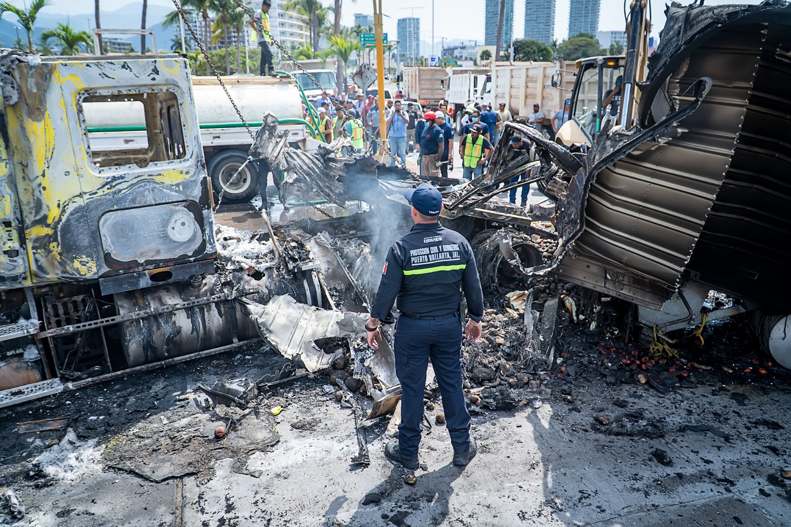 Como parte de las acciones implementadas tras los hechos registrados recientemente en el municipio, el Gobierno de Puerto Vallarta informa que hasta el momento se ha logrado el retiro de 92 vehículos, entre ellos camiones de transporte público y un tráiler, que fueron utilizados para generar bloqueos en distintas vialidades, algunos de los cuales ya se encuentran bajo resguardo en corralones.