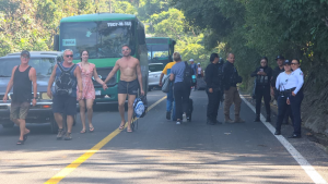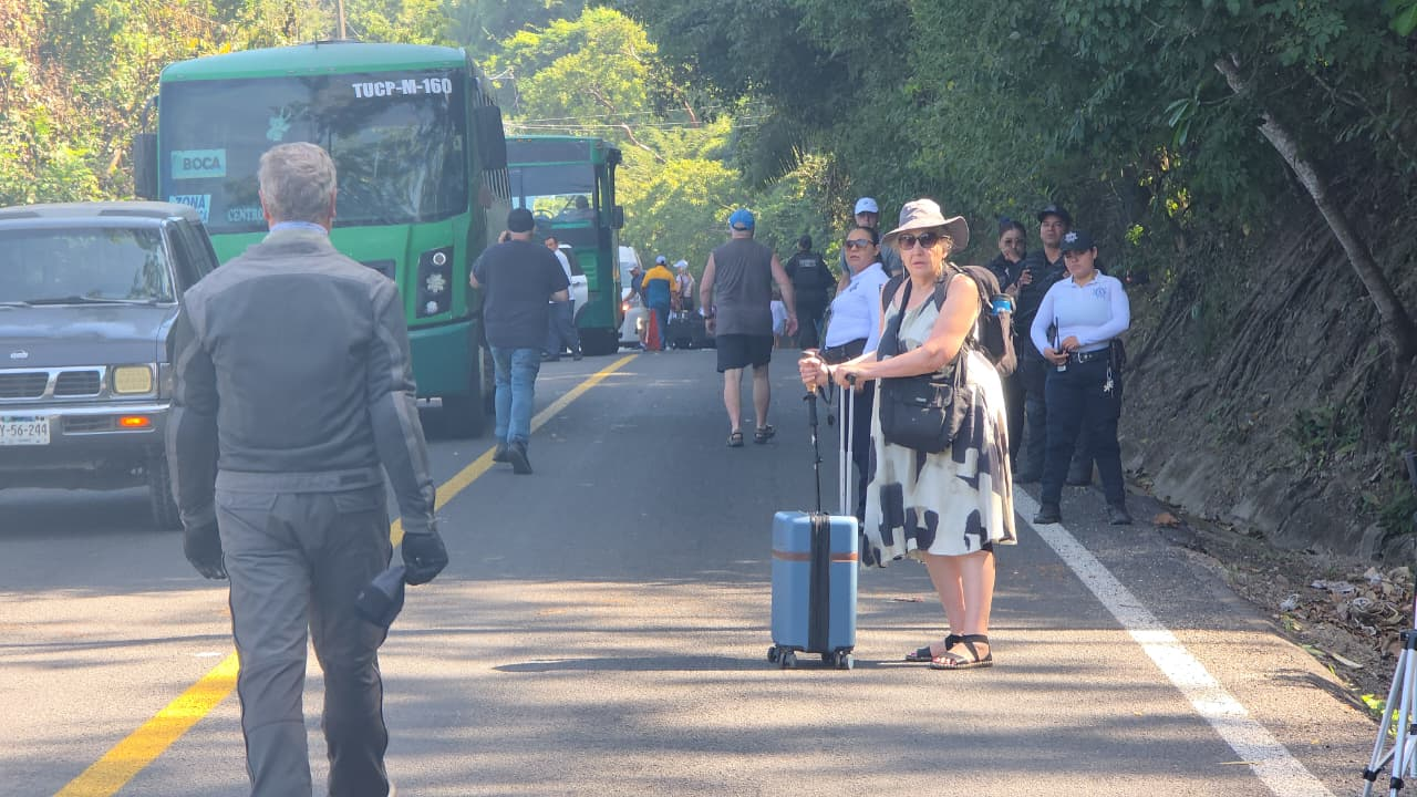 Decenas de turistas nacionales e internacionales se han visto afectados por el bloqueo carretero registrado este miércoles en las inmediaciones de los Arcos de Mismaloya, al sur de Puerto Vallarta, sobre la carretera federal 200 que conecta a este destino turístico con Barra de Navidad.