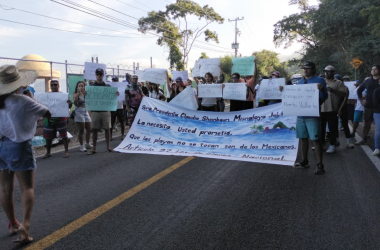La vialidad fue cerrada por manifestantes que se oponen a lo que consideran la privatización del Parque Nacional Marino Los Arcos de Mismaloya y al presunto cierre del acceso a la playa del mismo nombre por parte de desarrolladores inmobiliarios y hoteleros.