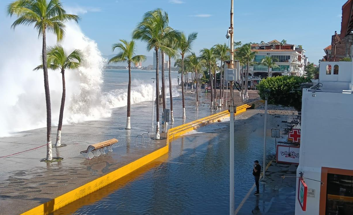 Debido a que aún se sienten los efectos de la marejada por el huracán “Priscilla” a su paso lejano frentes a las costas de Puerto Vallarta, se realizó nuevamente el cierre a la circulación vial en la calle de Morenos, en el centro y la lateral de la avenida Francisco Medina Ascencio a la altura de Las Glorias.