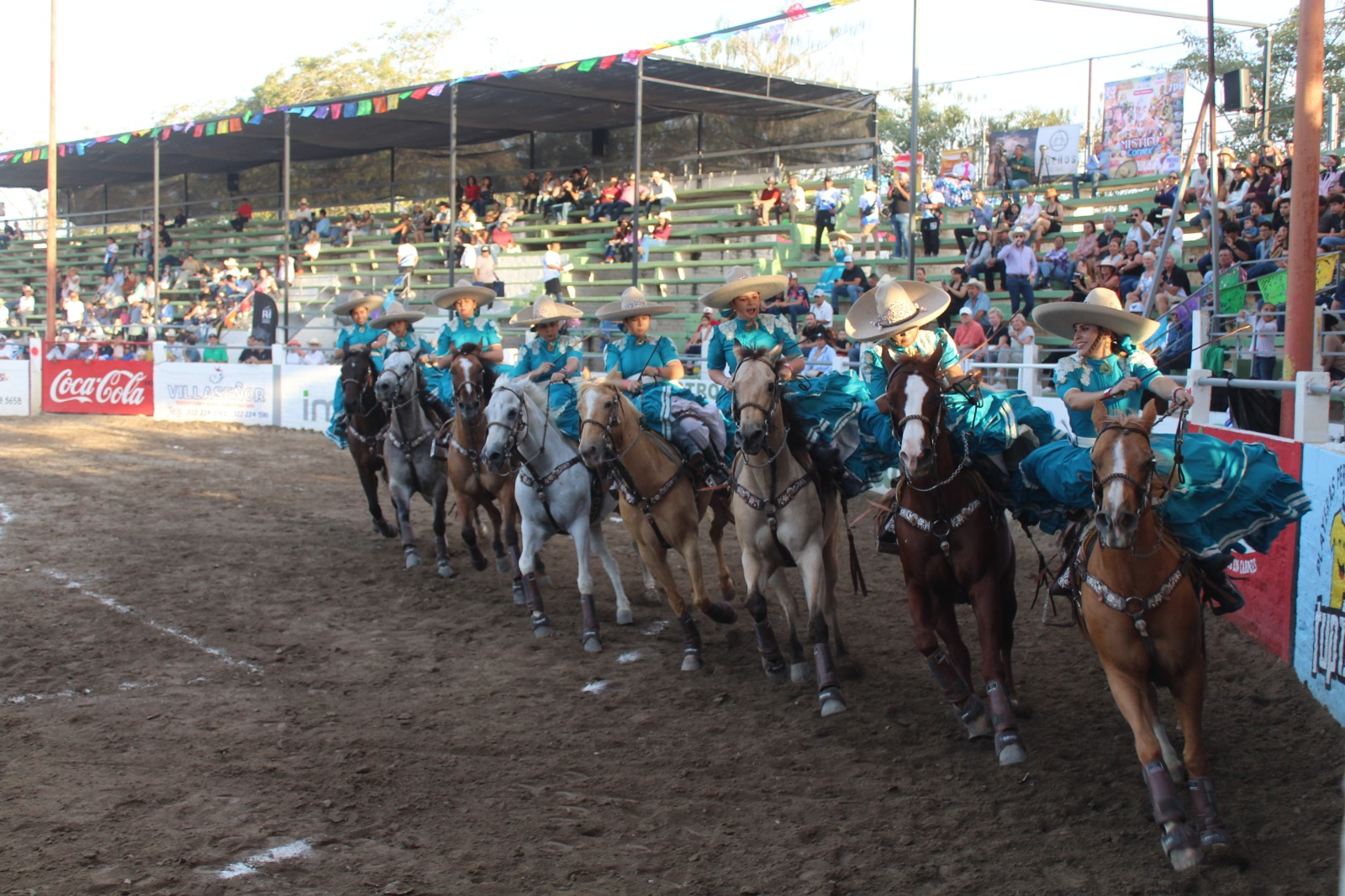 Al ritmo de la música El Balajú, las integrantes de la escuadra mostraron una rutina bien estructurada, que reflejaron horas de preparación y dominio del caballo.
