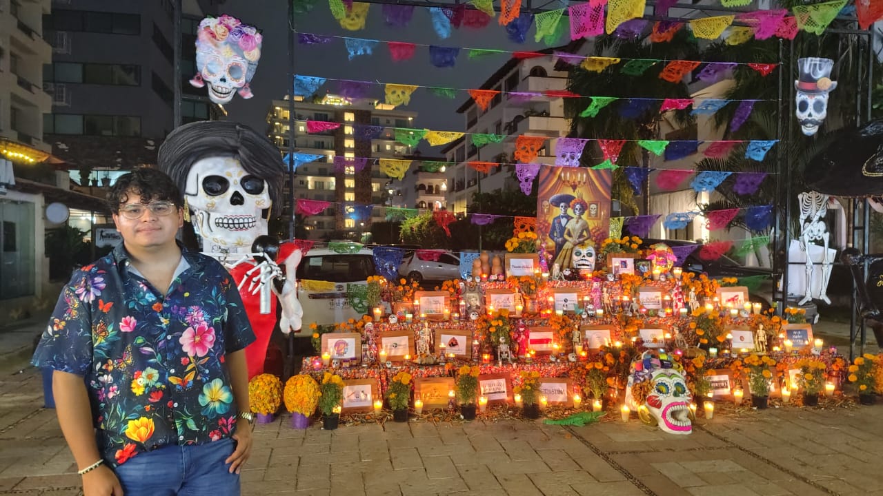 La instalación, elaborada por Marcos Covarrubias Pérez, destaca por su rica simbología. Entre los elementos más llamativos se encuentran una catrina en honor a la célebre autora jalisciense Consuelito Velázquez Torres y un catrín que recuerda al icónico Vicente Fernández. Además, el altar exhibe fotografías de personajes emblemáticos de Puerto Vallarta, junto a vibrantes calaveras y catrinas que representan a todos aquellos que han partido.