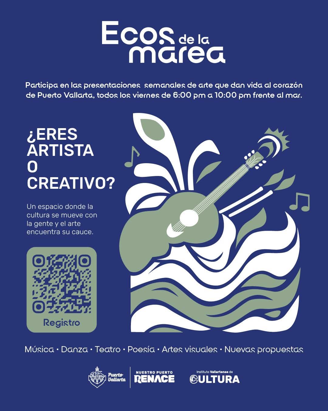 Este viernes 14 de noviembre, los Arcos del Malecón serán el escenario de Ecos de la Marea, una nueva propuesta del Instituto Vallartense de Cultura que busca abrir oportunidades a las y los artistas locales. Con el respaldo del gobierno de Luis Munguía González, este proyecto impulsa la participación de talentos vallartenses en un espacio cultural abierto al público.