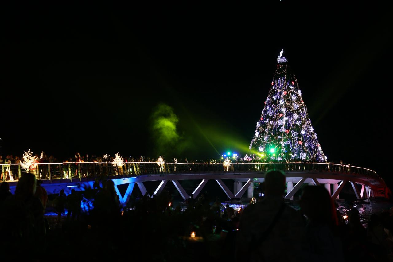 La Navidad se hizo presente en el Muelle de Los Muertos con el arranque del festival “Mar de Regalos”, donde cientos de locales y turistas se reunieron para disfrutar del encendido del árbol navideño en uno de los espacios más representativos de Puerto Vallarta. El festival se desarrollará hasta el primero de enero, con actividades para vivir las festividades frente al mar.