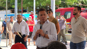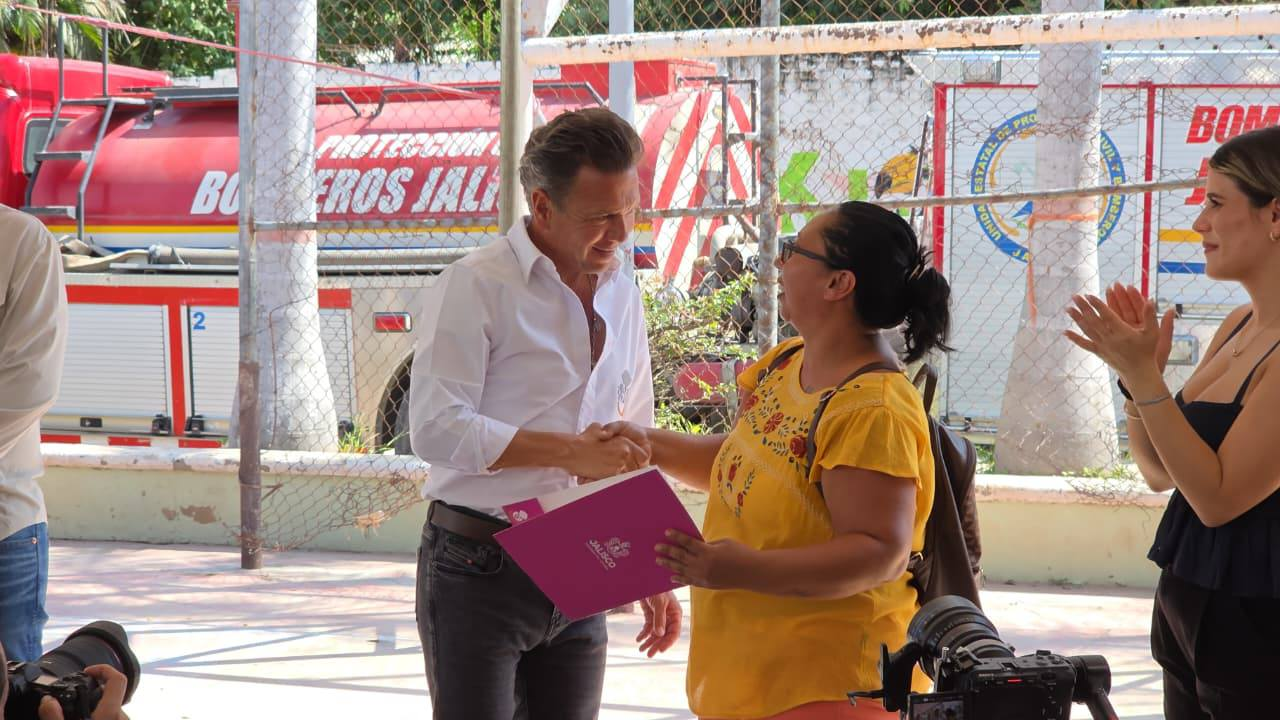 El gobernador Pablo Lemus Navarro hace la entrega de 93 cheques a igual número de familias afectadas por la tormenta del 19 de septiembre en Las Mojoneras.