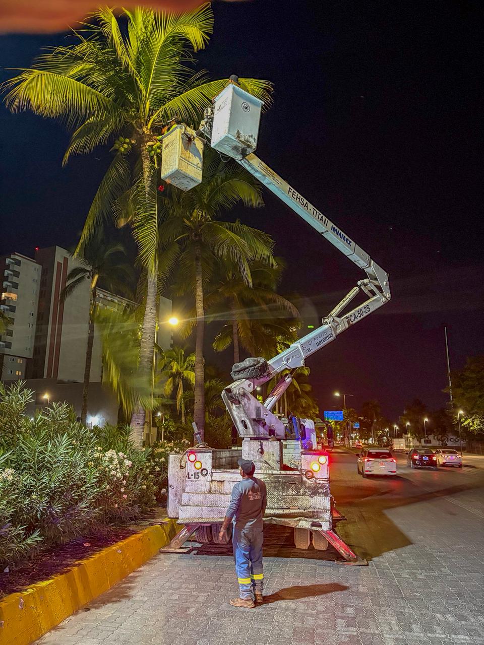 Gracias al trabajo coordinado del personal de Parques y Jardines, dependiente de la Dirección de Servicios Eficientes, dirigida por Javier Navarro, se intervinieron cerca de 10 kilómetros de vialidad, donde se encuentran casi mil palmeras de gran altura. La poda se llevó a cabo para prevenir accidentes y recibir en óptimas condiciones a los visitantes durante el próximo periodo vacacional de invierno.