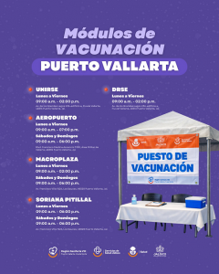 En Puerto Vallarta están habilitados módulos de vacunación en diferentes espacios públicos como parte de la estrategia de contención de esta enfermedad altamente contagiosa. Aunque en Puerto Vallarta hasta el momento hay cero casos confirmados.