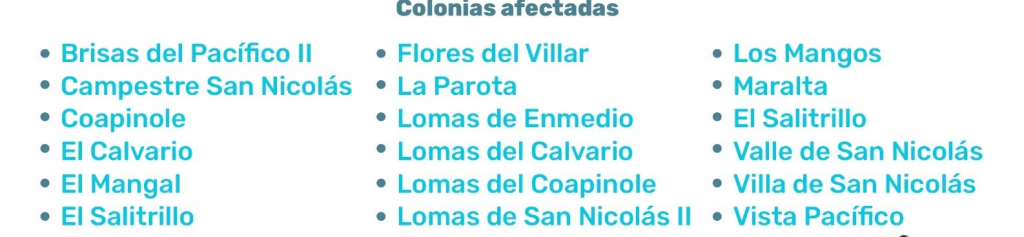 De acuerdo con el Seapal, esta problemática se deriva por un fallo eléctrico que dañó el equipo de bombeo del Pozo 38, se presenta baja presión y posible falta de agua en algunas colonias de El Pitillal parte alta.