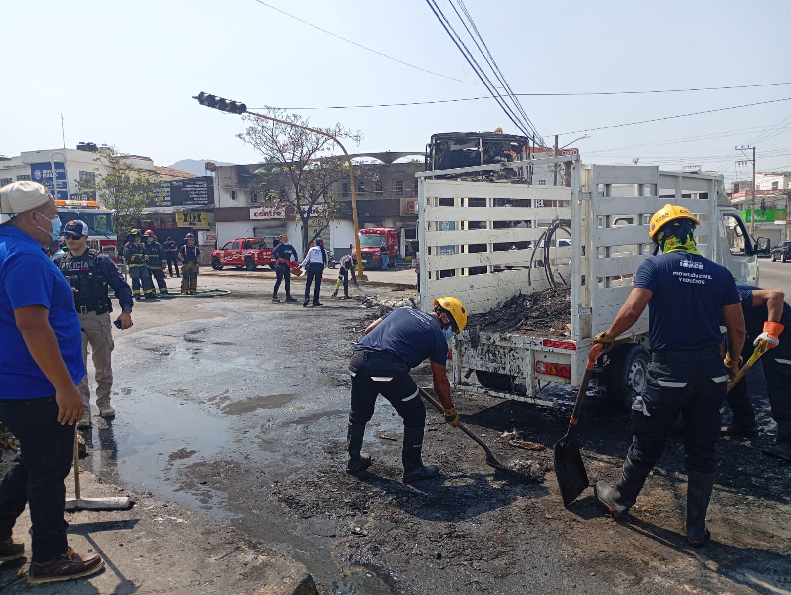 En coordinación con el director de la dependencia, el ingeniero Misael López Muro, este lunes continúan los trabajos en campo enfocados en el control de riesgos, evaluación de zonas afectadas, remoción de vehículos incendiados y verificación de seguridad en distintas áreas del municipio, mientras permanecen vigentes las recomendaciones preventivas ante el Código Rojo activo en el estado de Jalisco.