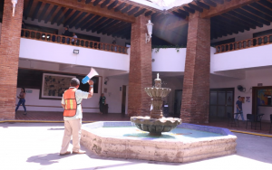 En lo que respecta al simulacro que se hizo en el edificio de la Presidencia Municipal, también a las once horas al sonar las alarmas y activarse los protocolos, el inmueble quedo vació en menos de tres minutos.