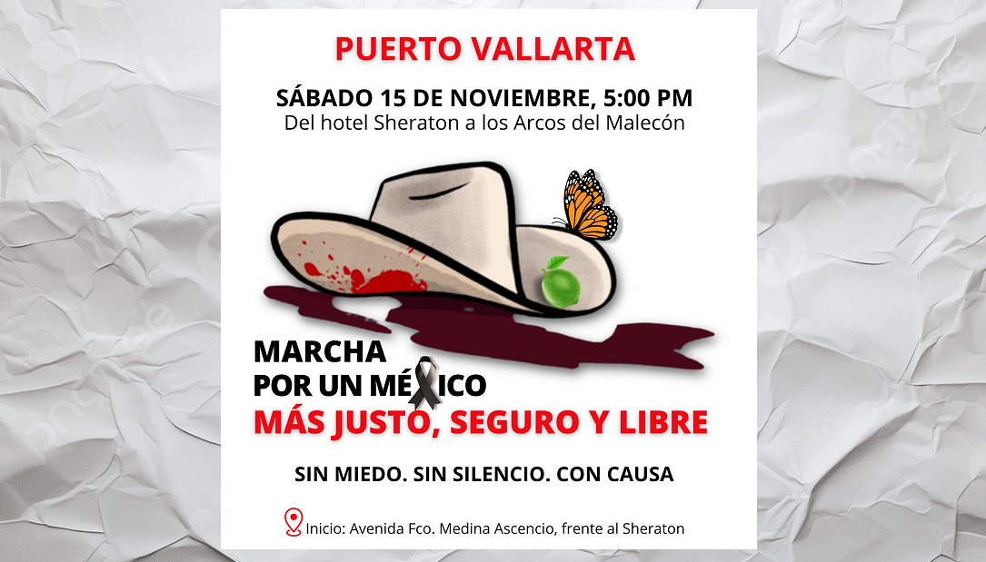 Bajo el lema de “Por un México, Seguro, Justo y Libre” replicarán en Puerto Vallarta el movimiento que detona con el artero asesinado del alcalde de Uruapan, Carlos Manzo Rodríguez el pasado 1 de noviembre con movilizaciones que se realizarán en alrededor de 80 ciudades del país.