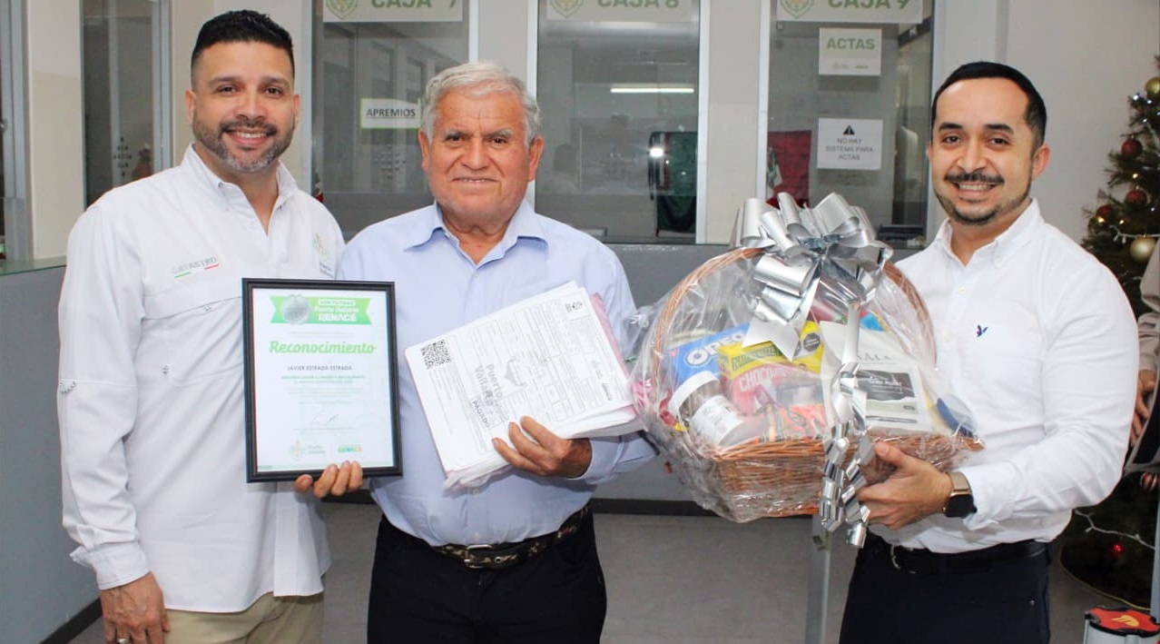 Vásquez Martínez, quien se siente contento de ser responsable con este pago desde hace 25 años, agradeció al Gobierno de Luis Munguía por el reconocimiento y la canasta navideña entregados. Javier Estrada, quien llegó a las 7:30 de la mañana del 1 de enero, y Luis Fregoso, quien llegó a las 4:10 de la mañana del 2 de enero, también fueron reconocidos por su puntualidad y recibieron reconocimientos y canastas navideñas.
