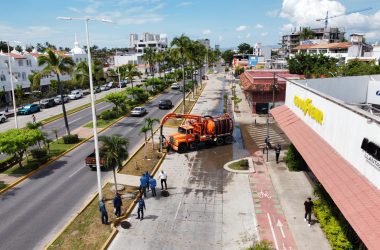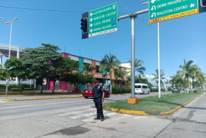Mientras que en el carril lateral de la avenida Francisco Medina Ascencio entre Prisciliano Sánchez y Puerto Mágico en dirección Norte-Sur, en estos momentos abierta la circulación, al bajar el nivel del agua, ya se encuentra transitable para vehículos grandes y vehículos pequeños, se encuentra un oficial en el lugar, apoyando en todo momento en las indicaciones a conductores, así como apoyo al cruce de peatones.