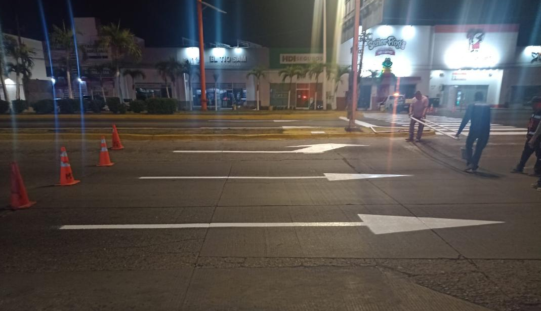 Es así que este mes, ya se reiniciaron los trabajos y fue en la Avenida Medina Ascencio y Paseo de La Marina frente a la ballena, que se brindó el apoyo al equipo de balizamiento con el cierre y resguardo de carriles para el pintado de líneas peatonales y flechas, en sentido a la circulación, cerrando carriles centrales, y laterales de Sur a Norte y Norte a Sur, finalizando él apoyo a las 3:00 a.m. del día martes 10 de febrero del presente.
