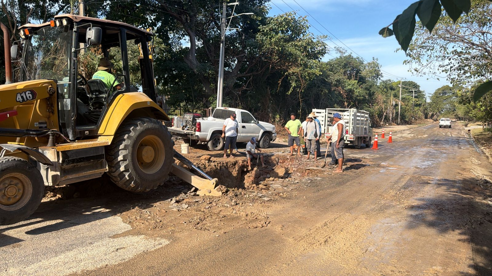 Desde temprana hora, personal operativo del organismo se encuentra trabajando en el camino al Campo de Golf, con la encomienda de concluir la reparación a la brevedad posible, con el objetivo de mitigar las afectaciones a las familias vallartenses.
