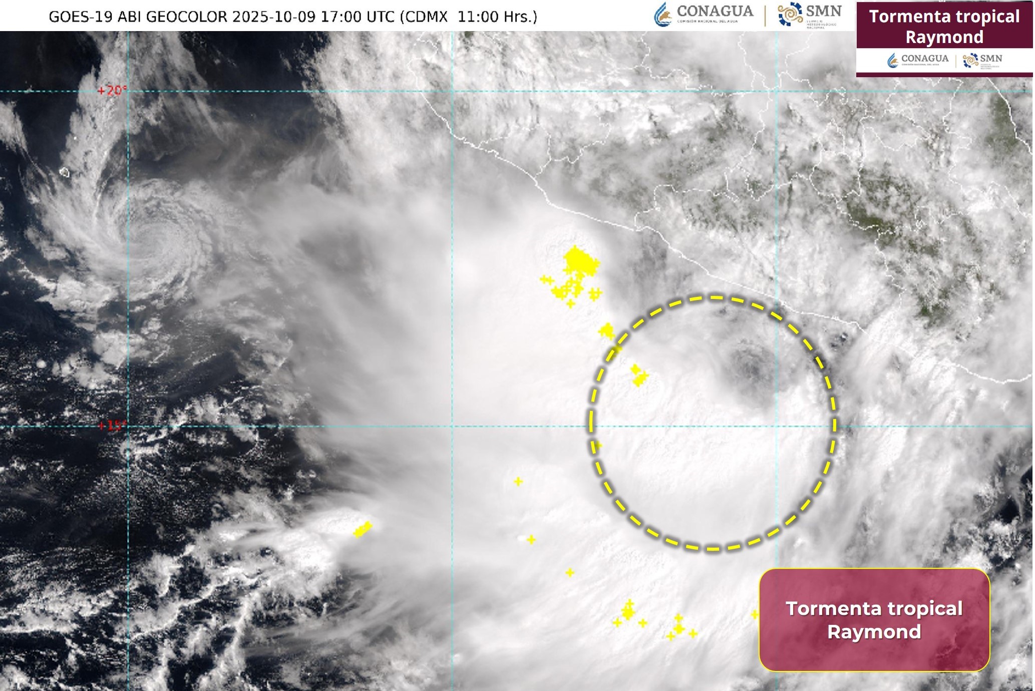 Este jueves 9 de octubre se formó la tormenta tropical Raymond, fenómeno meteorológico número 17 que se desarrolla en el océano Pacífico en la actual temporada de ciclones tropicales, según informó el Servicio Meteorológico Nacional.