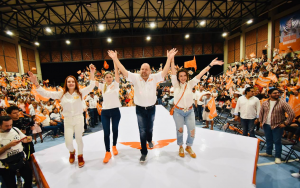 “Desde aquí le decimos al mal gobierno: estamos presentes, estamos de pie”, afirmó Guerrero Martínez ante un entusiasta auditorio que se estallo en porras cuando el precandidato emecista exclamó “vamos a volver a ganar en el 2024”.