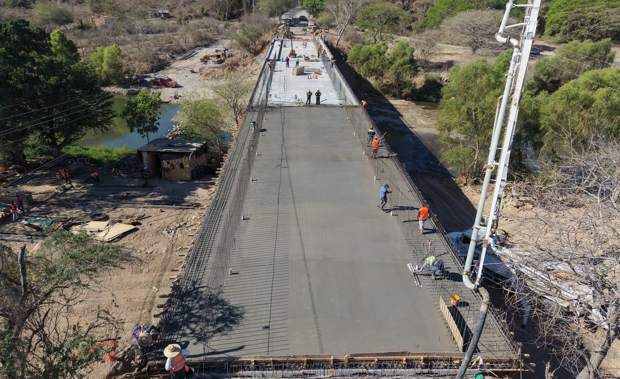 Este fin de semana terminó el proceso de colado en la reconstrucción del puente de la Desembocada sobre el río Mascota en la zona rural de Puerto Vallarta.