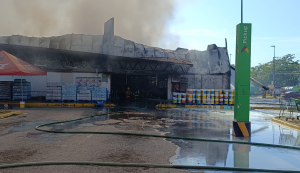 Voraz incendio consume la bodega Aurrera en Ixtapa; no hay heridos